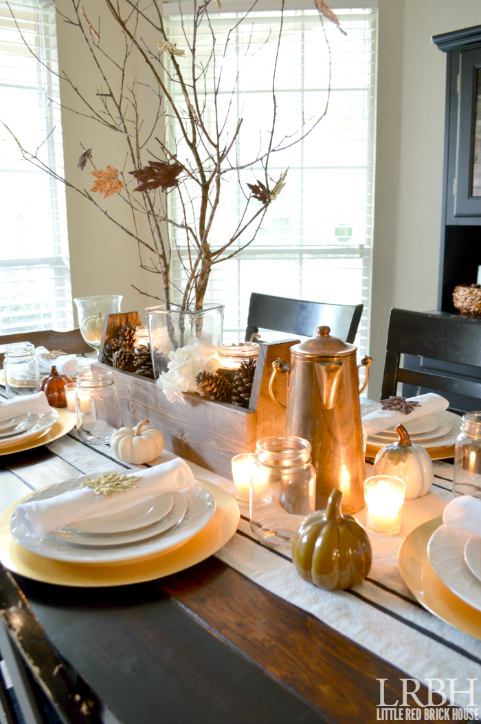 This DIY tablescape is a great choice for the host/hostess on a budget. The majority of these decorations were bought at the Dollar Store, Walmart or found laying around the house!