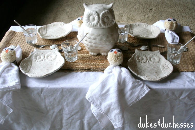 Everyone will want to sit at the kid’s table this year! These easy owl napkin holders are so cute and easy to make. Placing a vase in the middle with paper and crayons will keep the kids entertained.